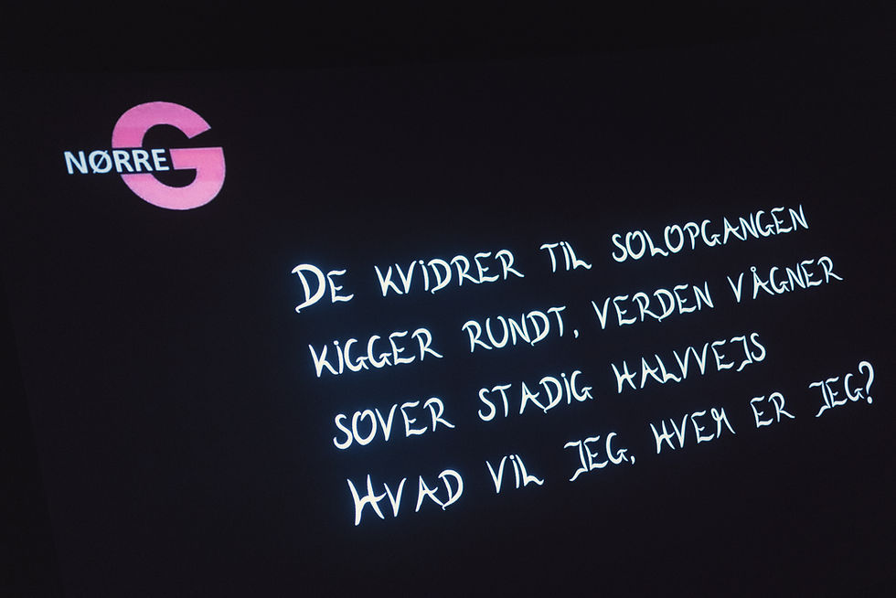 Vi har taget nogle toneangivende danske digte fra litteraturhistorien og tilsat moderne elektronisk baggrundsmusik. Teksterne vises for publikum på det store lærred, mens recitation af værkerne afspilles i surroundsound der underbygger en æstetisk oplevelse af poesien.